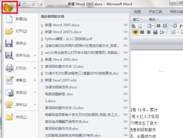2、然后用鼠标点击一下word文档界面左上角的“offic按钮”图标。