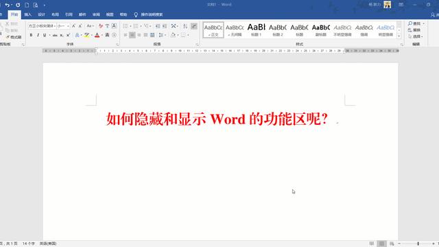 不过,单击相应的选项卡,会显示该选项卡下的功能区,点文档区,又只显示选项卡(隐藏功能区)。