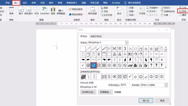 Excel同方法2:选择菜单中"插入"——“符号”,在窗口的字体中选择“Wingdings”或“Wingdings2”(Wingdings字体是一种将字母与图形相关联的字体),然后拖动滚动条找到相应的符号(空白框以及带钩的框都有)。或者在word里输入大写的“R”,然后字体改成“Wingdings 2”,就OK了!(方框打叉 单元格输入 : Q -- 字型选 Wingdings 2 )
