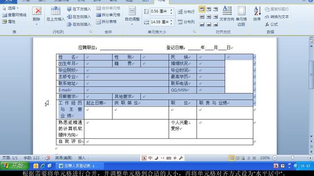 合并单元格也可采用擦除单元格之间的线条来实现。 5)调整行和列的宽度 将鼠标指向表格中的任意一条线上,鼠标的标志将变成双箭头形状,这时按住鼠标左键拖动,就可改变行或列的宽度。