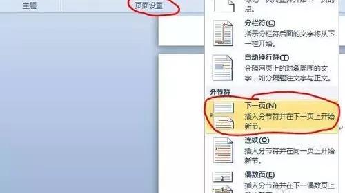 在子菜单中选择“下一页分节符”