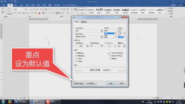 3 出现的 字体编辑对话框中,设置相应的字体格式。 点击“设置默认值”即可
