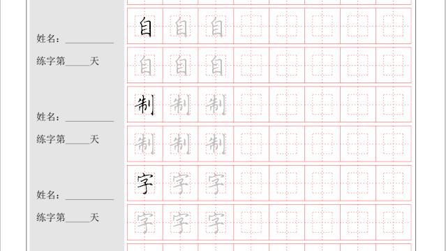 再次进行新建书法字帖时,即可实现单页内重复显示同一文字的效果。