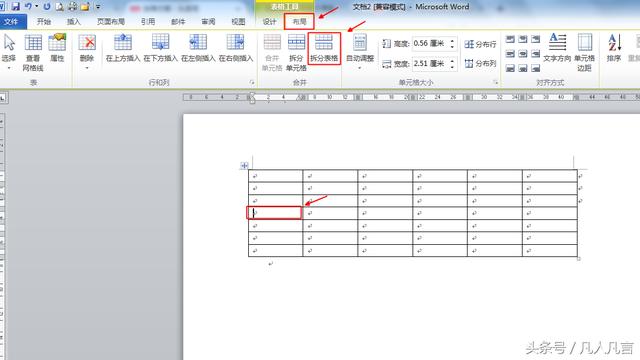 2、插入表格后,选中表格中间的一列,然后点击菜单栏表格工具下的“设计”