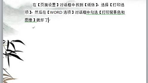 满页打印,首先要求图片覆盖整张纸,这就需要设置文档的背景,但系统在默认情况下,是不打印背景的,这就需要手动设置来达到要求了,具体方法如下: