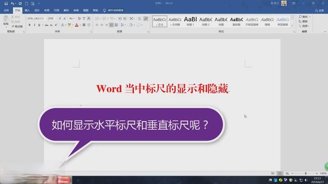 进入“视图”选项卡,在“显示/隐藏”选项组中将“标尺”钩上就是显示,将钩取消则是隐藏标尺。