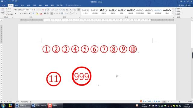 最后带圈的数字插入到Word文档中的效果如下图所示,小编这里将带圈的1到10都插入到文档中了