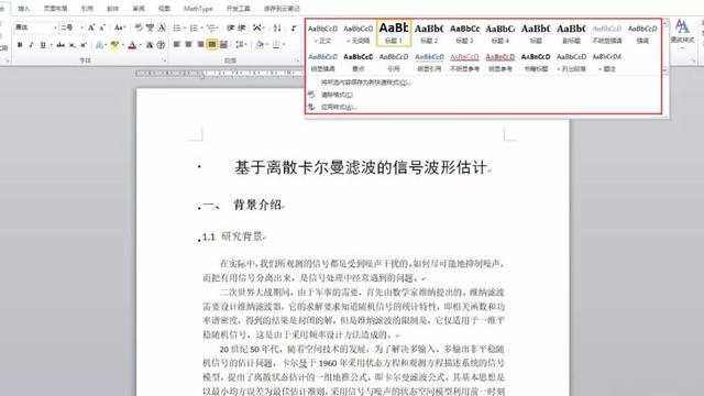 编写论文,一定要使用样式,除了Word原先所提供的标题、正文等样式外,还可以自定义样式。 如果你发现自己是用选中文字然后用格式栏来设定格式的,一定要注意,想想其他地方是否需要相同的格式,如果是的话,最好就定义一个样式。