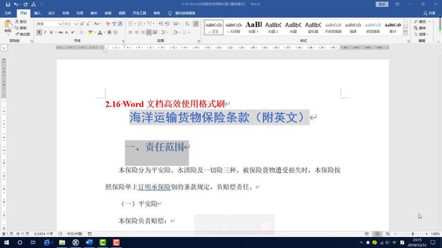 2、在word文档的主页面中,浏览页面中的所有内容信息,找到需要使用格式刷复制的内容,然后用鼠标点击全部选中。