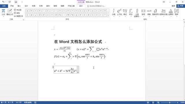 最后把剩余的内容输入到公式框,在公式框外单击鼠标左键完成公式的编写,并关闭公式工具栏。 如果发现输入的公式有错误,就在公式上双击,打开公式工具栏进行修改。