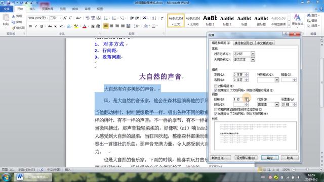 5、然后确定保存生效,我们就可以看到word文档选中的段落行间距被调整了。