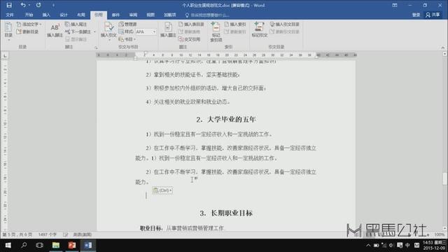 2、设置完成后,鼠标移至文章总标题下正文的起始位置,引用——目录。