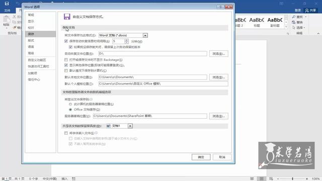 3、弹出"Word 选项"对话框,如图所示。点击"保存"图标,下步将进行设置文档自动保存时间间隔的操作。