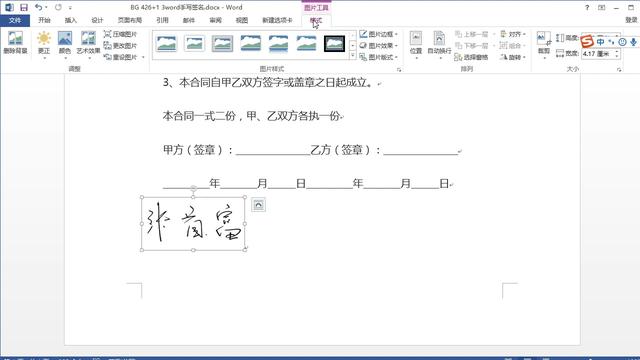 word文档中插入手写签名如下