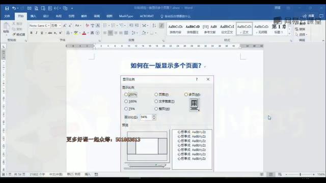 打开一个Word文档,同样点击“视图”菜单,在“显示比例”功能区,点击“多页”按钮,即可实现同一文档多页显示,通过右下角显示比例增大或缩小按钮,可实现自定义页数,点击“单页”即可还原。