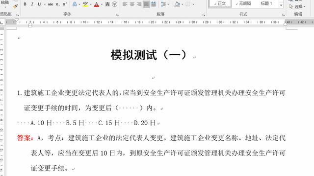 3. word练习题每道题后面跟着答案和解析,怎么一次性删除整篇练习中的
