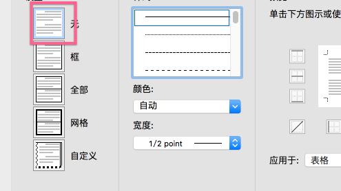 3、在对话框中去掉所有的列边框和中边框,然后为剩下的上边框和下边框选择一个较大的宽度值,最后点击确定。