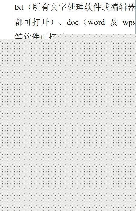 包括 :纯文本:txt网页文件:htmlrtf 富文本格式(Rich Text Format, 一般简称为RTF):rtf文档模板:dot单个网页文件:mhtml或mhtXML(Extensible Markup Language)即可扩展标记语言:xmldocx:office2007以后的版本可以打开,相当于office2003以前的doc