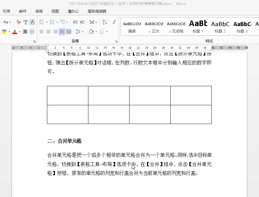 合并单元格,首先把你想要合并的几个单元格选中,然后右键会弹出一个对话框,选择"合并单元格"即可完成合并了! 拆分单元格,选中要拆分的单元格,单击右键,在对话框里,选择拆分单元格,输入你想拆分的格数即可! 如果是在把几个单元格拆分成多的单元格,首先得把这几个单元格按合并的方法合并之后,再拆分!