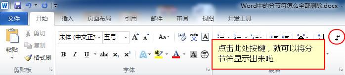 1.WORD中查找连续分节符的方法是将所有的分节符都显示出来,然后就会很清楚的查看到分节符符号和分节符三个字。