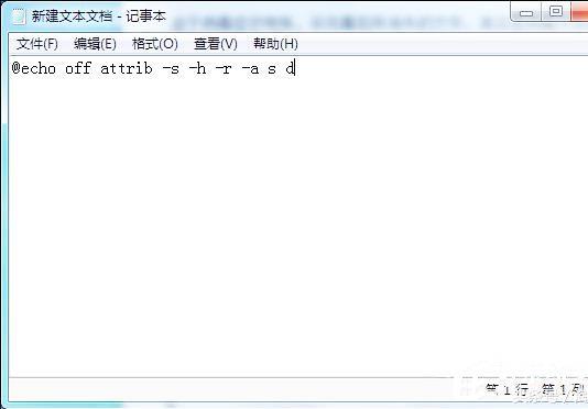 1、打开记事本,将下面这句话复制进去:for /f "delims=?" %%a in ('dir /a /b') do attrib -a -s -h -r "%%a"2、点击“文件”,“另存为”,在弹出的对话框中填写“a.cmd,然后点击“保存”。
