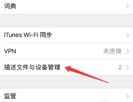 4、找到“描述文件与设备管理”这一选项。