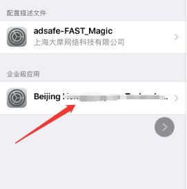 四、进入描述文件与设备管理页面后,看到“企业级应用”,然后点击进入企业级应用下面的按钮;