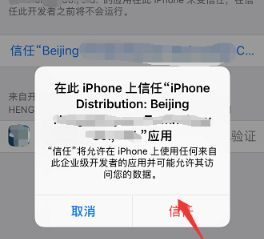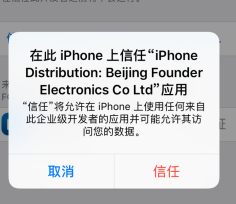 iPhone弹出对话窗口,问你是否信任该文件,选择“信任”。