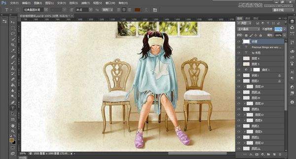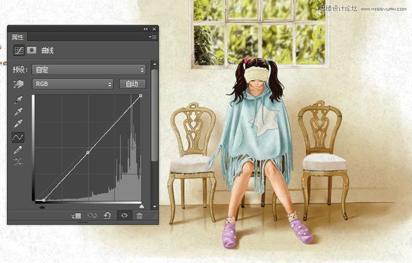 保存为PSD文件,打开photoshop,导入PSD,添加曲线调整图层,适当的调色,添加纸质纹理,纹理层加蒙版,擦出人物的部分。