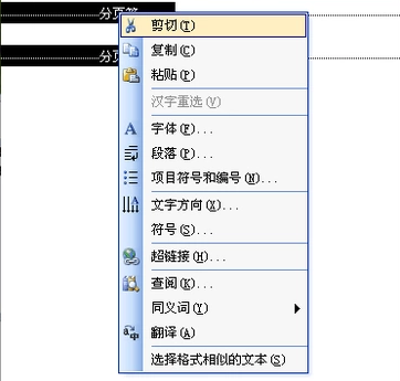 2、然后就可以直接在编辑界面看到分页符了,选中它们并点击“剪切”即可。