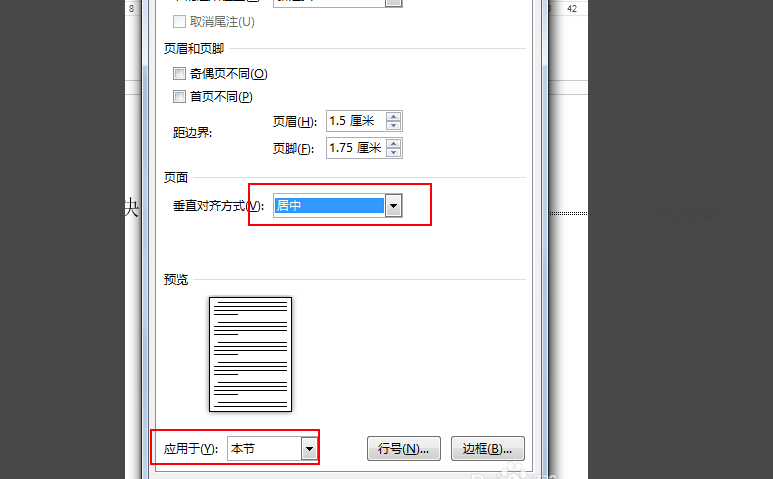 5、在弹出的页面设置中加页面垂直对齐方式设置为居中,此时我们就完成了word中垂直居中的操作。