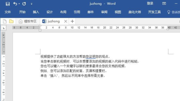 2、打开word文字处理软件,在文档中输入用于演示设置垂直居中的文本。