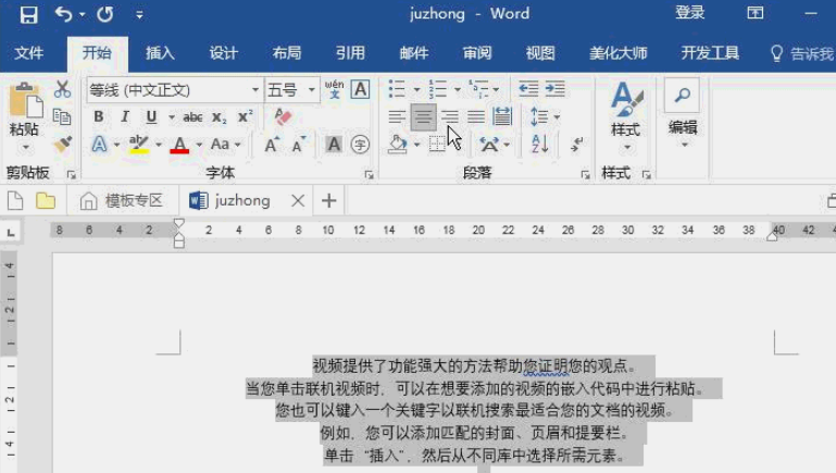 如何让word中的内容水平居中同时垂直居中?