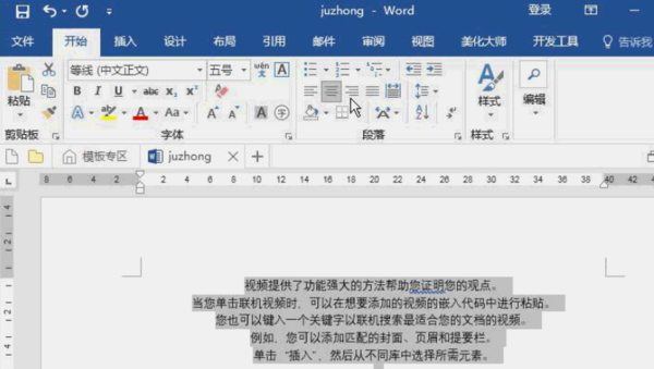 在word文档中怎么把文字设置成水平与垂直居中?