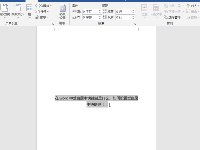 在word中垂直居中快捷键是什么、如何设置垂直居中快捷键!!