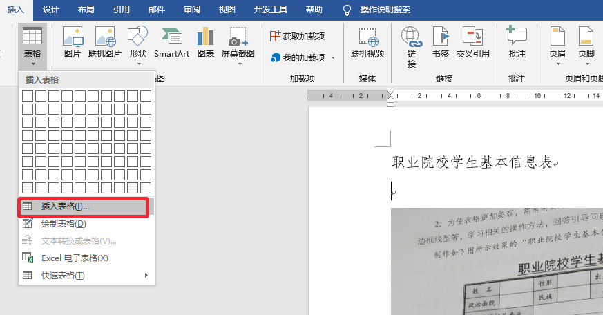 Microsoft Word 插入表格 学生基本信息信息表 求视频教程 拜托