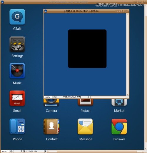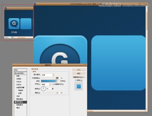 会出现一个与当前画布一模一样的新窗口。将此窗口拉到合适比例,比如当前你只需绘制Gtalk图标,就可以将新窗口拉至足够显示即可,并保持100%可视状态。这样你在绘制图标细节时,无论放到多大,进行任何操作,新窗口都会同步。如此,大大减少了100%与放大状态来回切换的时间。