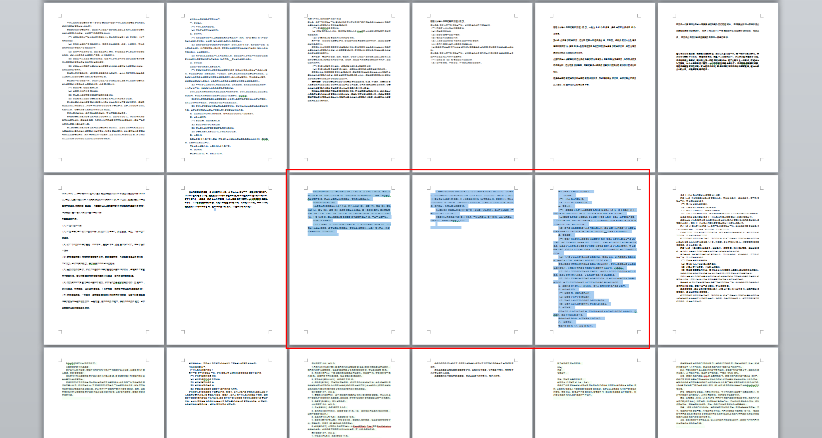 可以先将word整个页面缩小(按住Ctrl键,然后滚动鼠标中间,即可实现缩放),然后选中自己需要拷贝的几页,如图所示,然后单击菜单复制,然后粘贴至需要的位置。即可实现整页的拷贝。