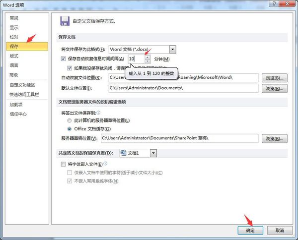 3、点击保存,勾选保存自动恢复时间间隔,输入时间,点击确定即可。