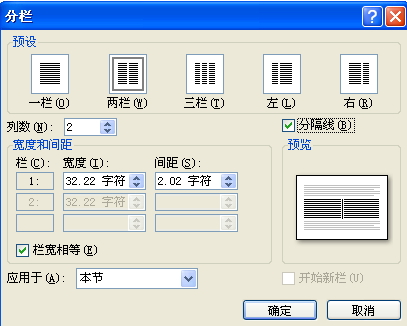 在“布局”选项里找到“分栏”按钮,如图所示效果。