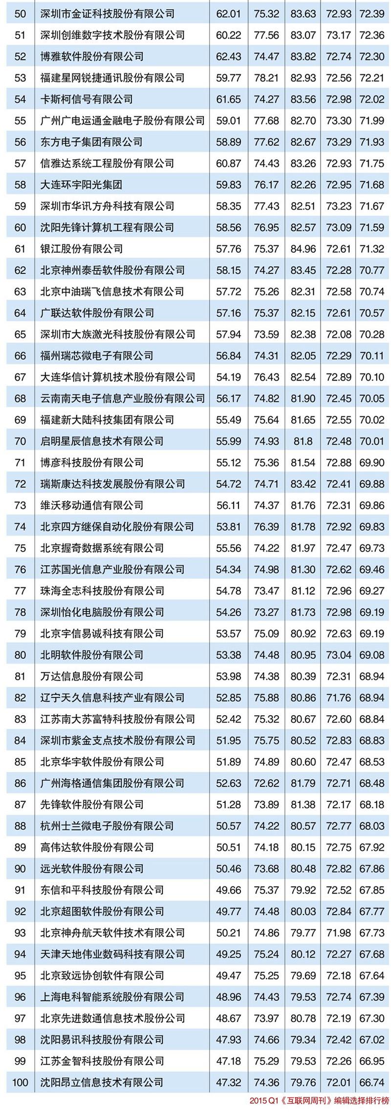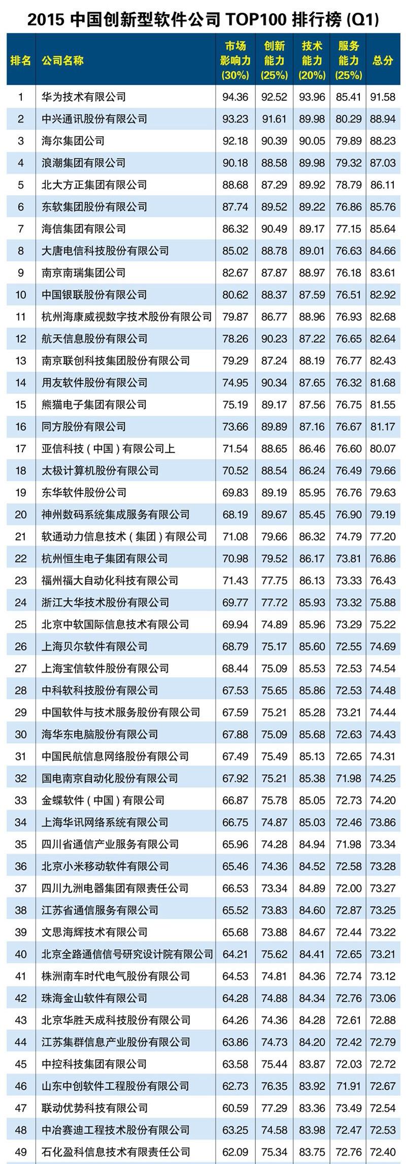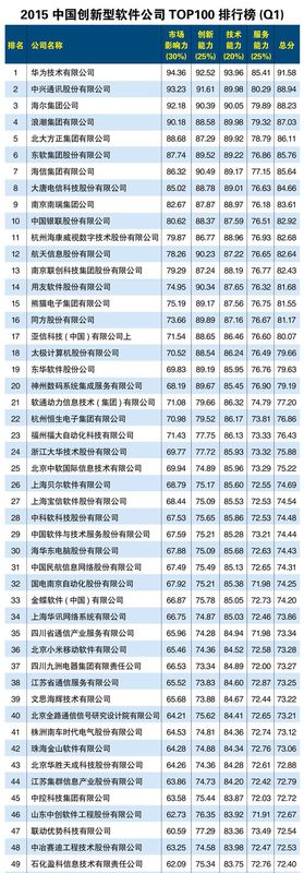 下图为2015年中国创新型软件公司TOP100排行榜
