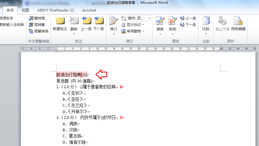 步骤一:打开需要设置的word2007文档,在菜单栏上找到审阅。同时可以看到,菜单栏下面的状态发生了改变。
