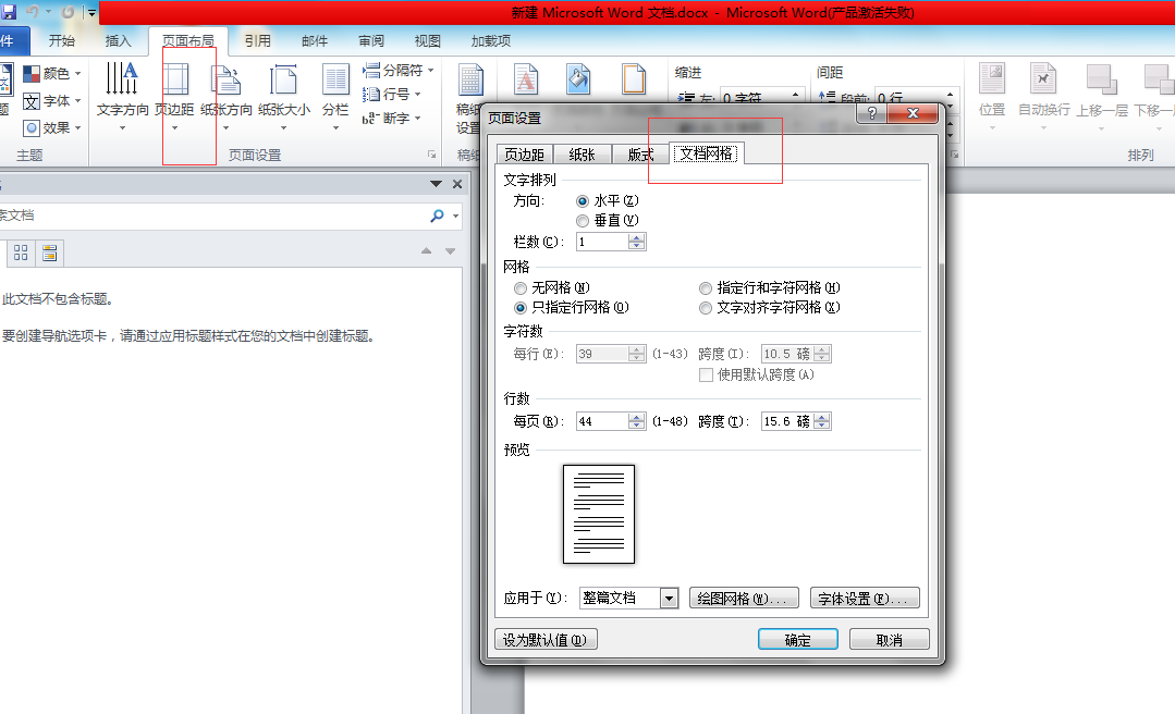 2、弹出页面设置对话框,选择文档网格选项卡,选中无网格选项即可,如图所示。