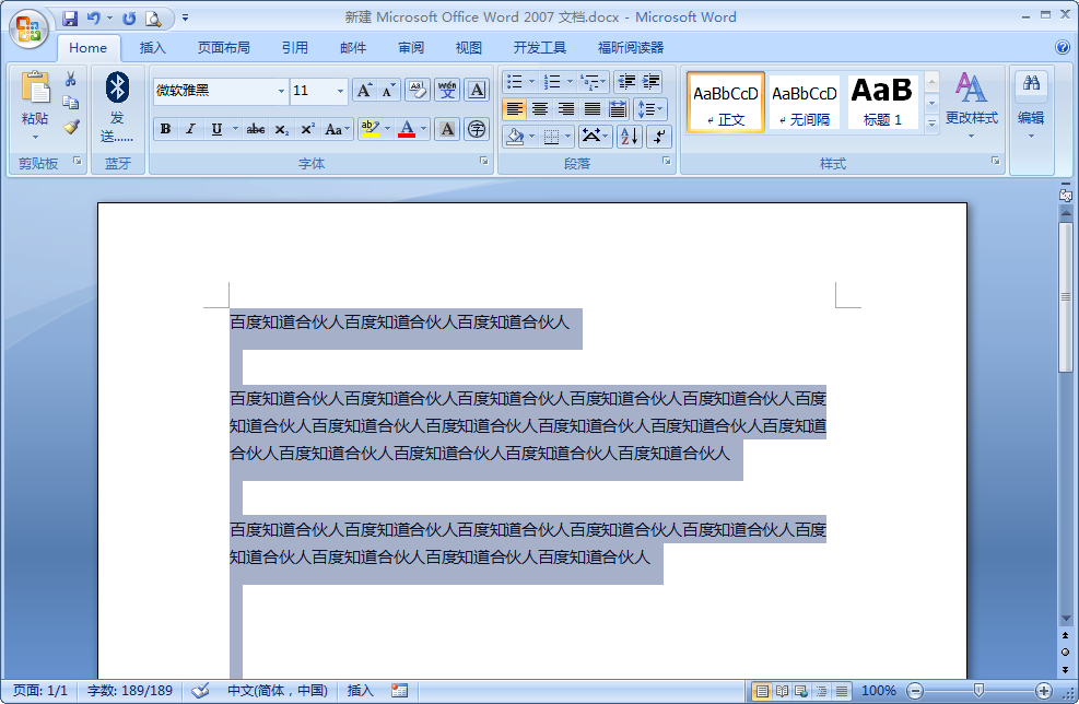 2、新建Word文档,在文档内输入演示数据,数据用于演示如何在Word文档中设置首行缩进的操作。