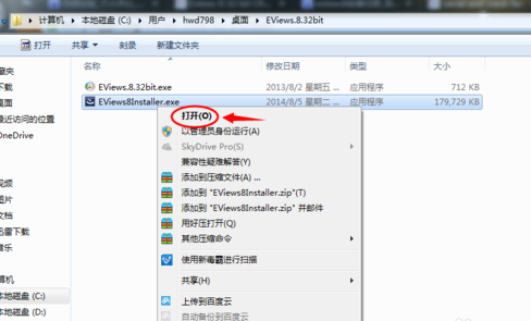 下载完成上面两个软件,网上很多下载的,百度一下就有了。右击EViews8Installer.exe,选择【打开】,启动安装程序。