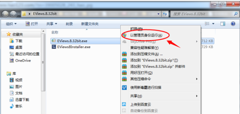 下面介绍Eviews8的注册方法,右击EViews.8.32bit.exe,一定要选择选择【以管理员身份运行】,否则会报错。