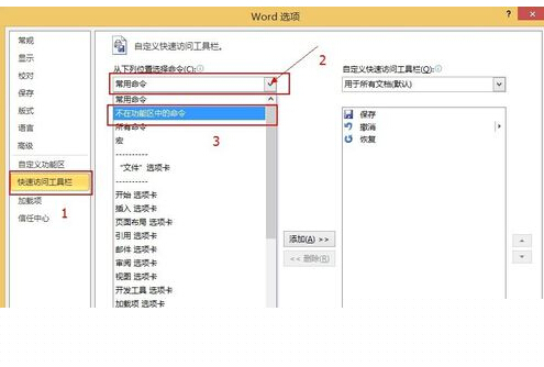 (2)点击“从下列位置选择命令”右侧的小按钮;