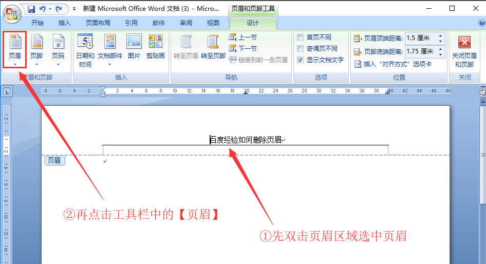 先设置页眉: