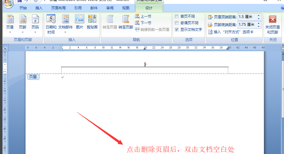 5、然后双击文档的空白处,退出页眉编辑状态,就成功删除页眉了。