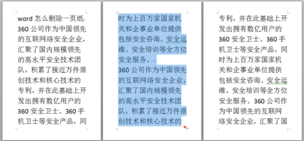 1.要删除的这一页有文字或其它内容时,则先将此页的内容全选。做法是:首先选中本页第一行开头的一个或几个字符;